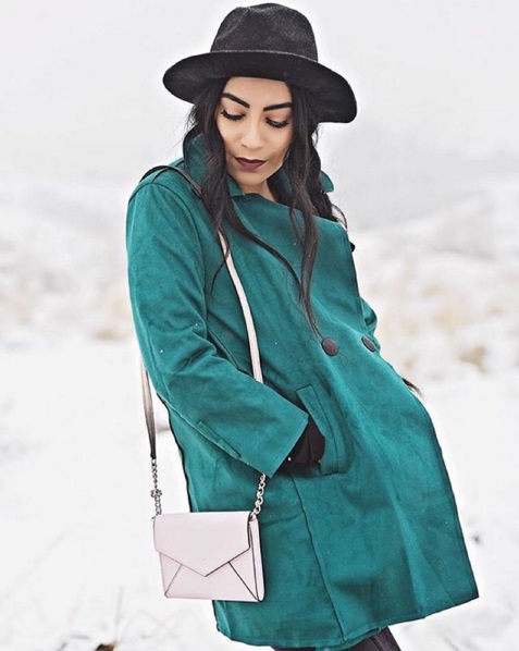 2) Keep cozy in a green suede coat: Make a statement with an emerald green coat to keep you warm during the transition months. The rich green shade is a great alternative to your camel wool coat to give your neutral palette a pop of colour for the spring season. Look for a coat with tailored seams for a clean silhouette. Whether you’re catching the bus to work or strolling along the streets on the weekend, the rich green colour will sure make an eye-catching statement.