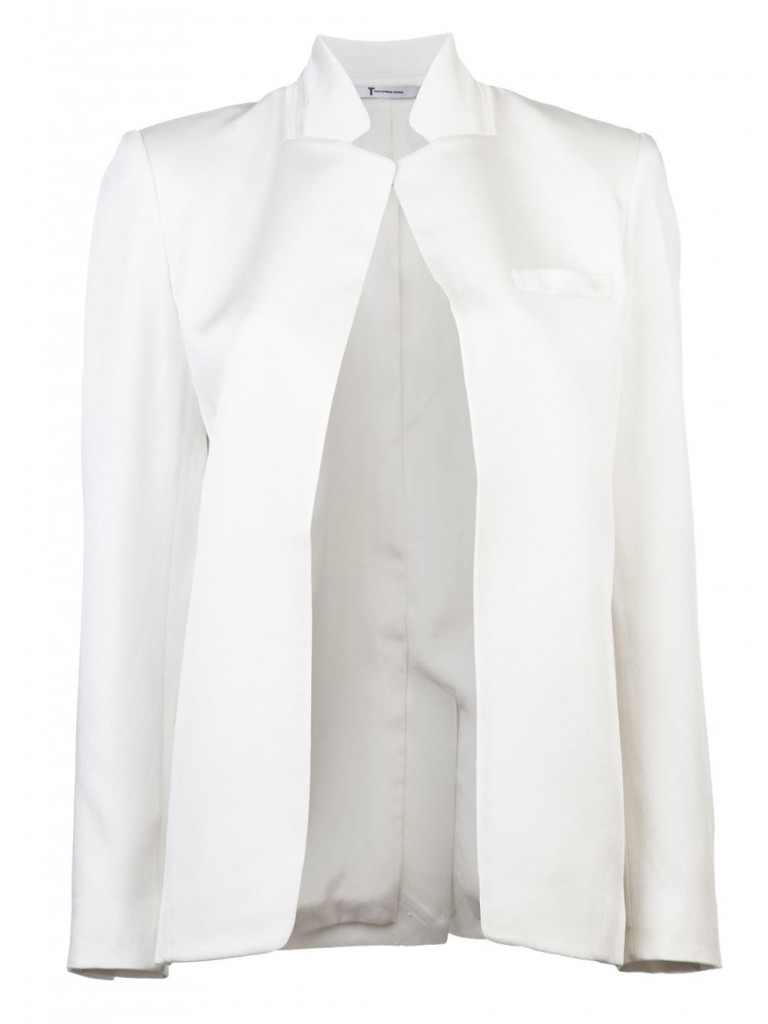 1) T By Alexander Wang Open Front Jacket, $308: We are loving the sleek style and the crisp, open design of this snowy white jacket from T By Alexander Wang. The striking, stand-up collar lends a modern edge to a classic blazer, while the pristine hue is a ladylike touch.