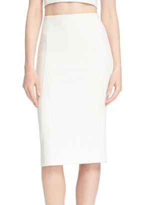 2) Alice + Olivia ‘Jarrett’ Pencil Skirt, $301: To showcase your enviable legs, try slipping into this figure-flattering white pencil skirt for an instant monochromatic statement. The stretchy skirt is sure to enhance your curves, while the look of a matching jacket will leave you feeling ready for business.