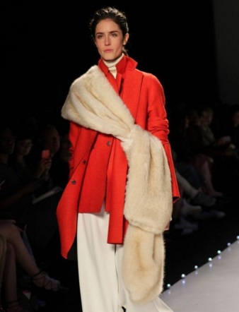 Meanwhile, emerging Toronto designer Candace Daniela featured chic, tailored outerwear. Polished black jackets with flared silhouettes, red jackets detailed with black leather and furry collars were signature looks.
