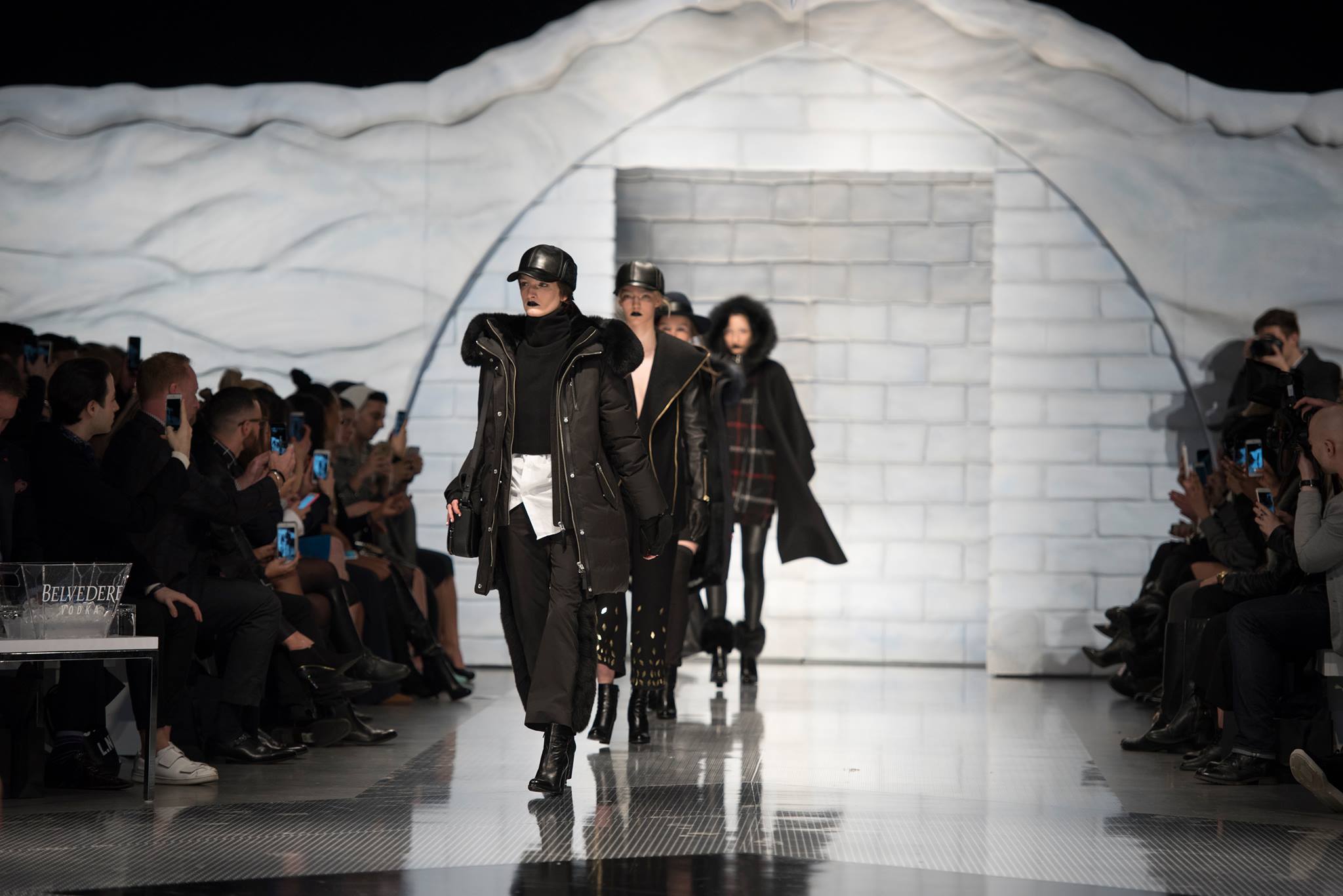 Montreal-based label Mackage held their Toronto Fashion Week runway show at the CBC Headquarters. For their new Fall 2016 Winter Warriors line, co-creative directors Eran Elfassy and Elisa Dahan showcased smart wool coats, practical parks and luxurious furry hoods. Muted shades of dark brown were contrasted against red plaid prints, gold metallic detail and a military chic aesthetic.