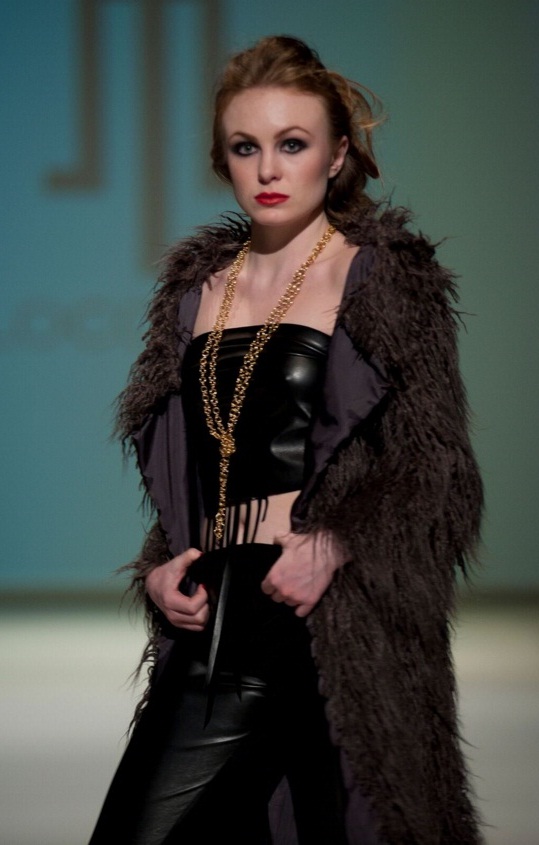 Ottawa-based designer Helena Jones founded Lococina in 2006, and runs the label in partnership with her sister, Mila Mumuldi. Lococina finds its design inspiration in the early Canadian nomadic lifestyle, and showcased a mix of leather and fur on the catwalks. From slick black leather trousers to furry jackets, the newest designs combined textures and materials.