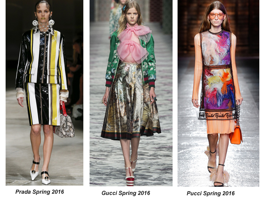 This season, try invigorating your weekend wardrobe with oversized bows and an embroidered zip-up athletic jacket (as spotted at Gucci). The look of contrasting embroidery and voluminous pink bows on a sheer blouse can immediately revamp your sartorial statement. Meanwhile, a pleated mid-length dress with a cool graphic print plays up against the contrasting green and pink shades, and enhances the fierce aesthetic on display.