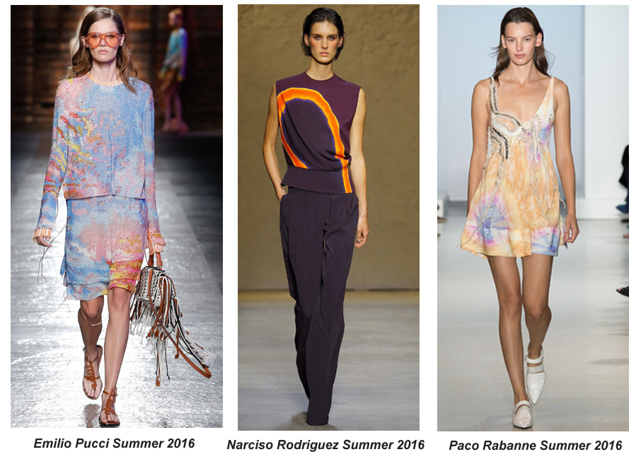 For a funky Saturday look, draw your inspiration from the Emilio Pucci runways and step out in a long-sleeved tie dye shirt in ethereal pastel shades. The sky blue, pale pink and sunny yellow shades can easily brighten your wardrobe, while a coordinating knee-length skirt completes your outfit. Try accessorizing your lightweight, free-spirited style with oversized orange sunglasses, brown leather gladiator sandals and a fringed bag.
