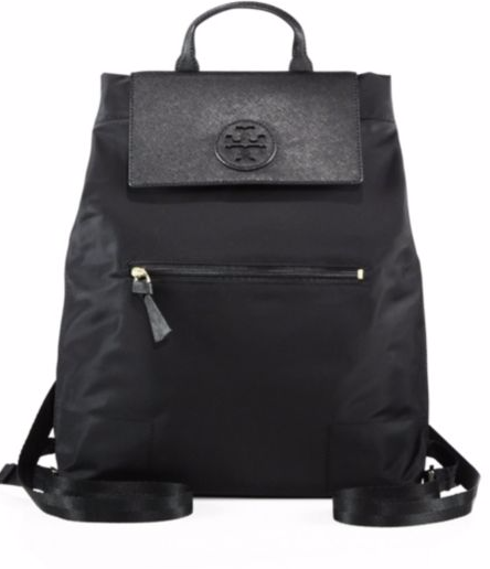 3) Tory Burch Ella Nylon Backpack $305: The sleek, all black everything backpack, styled with leather accents is a great athletic everyday backpack. With its Nylon lining, there is a very relaxed feel to it. Throw on the spacious bag on your way to the gym, or on your way to lunch with friends.