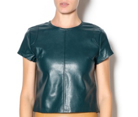 2) Bishop + Young Vegan Leather Top, $87: We are liking the rich teal hue of this short-sleeved vegan leather shirt. The fitted silhouette can easily flatter your flowing, airy skirt, for a look inspired by the Quantico actress herself.