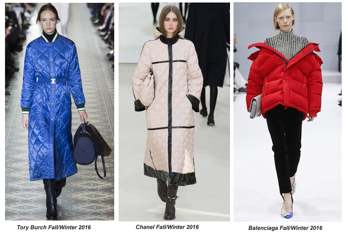 As day turns into night, look no further than the Chanel catwalk. For evening functions, turn to a long pale pink and black puffer, accessorized with black boots and a matching pale pink purse. Whether you’re sporting a little black dress or a hot glittery number, an inspired elegant puffer coat will keep you warm on your way to your event.