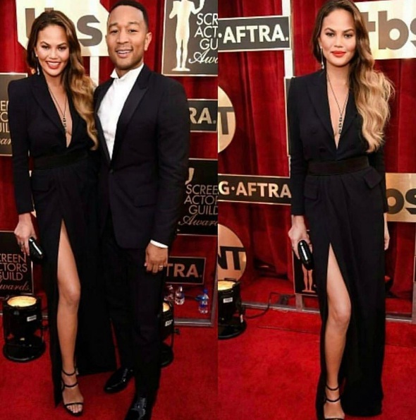 The 31-year-old model looked gorgeous, as she stepped out onto the red carpet in a black stretch-crepe gown by DSquared2. With a suiting style which was inspired by the label’s menswear aesthetic, the figure-flattering frock emphasized her curves. Meanwhile, a plunging V-neckline and thigh-high slit completed the design. Teigen accessorized her dress with a pair of strappy black heels, which offered a perfectly understated accessorizing touch.