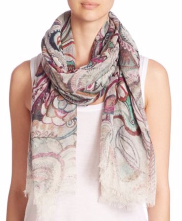 2) Franco Ferrari Evans Wash Paisley Wool & Cashmere Scarf, $185: The impending arrival of spring calls for punchy prints which can easily revitalize a perfectly neutral outfit. This wool and cashmere blend scarf features a multicoloured paisley print that can usher in the season ahead.