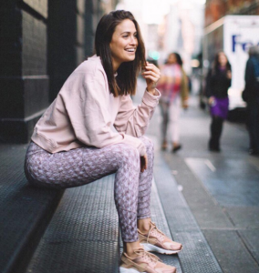 Pop of Design:. In order to stay trendy and comfortable, try going for a pair of leggings with a subtle design to brighten up your outfit. Since bolder workout leggings can be busy, pair them with a simple, understated sweatshirt or long sleeve top to keep a perfect balance. It’s also smart to throw on a pair of cute running shoes which follow with the color scheme of the leggings. This way, you have a trendy outfit, without making to big of a statement.