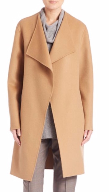 1) Elie Tahari Dez Solid Oversize Coat, $350: We are loving this rich camel shade of this wool blend coat. Meanwhile, the statement lapels help to complete the elegant and timeless outerwear design.