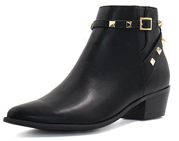3) Allegra K Women Pointed Toe Low Stacked Heel Stud Strap Ankle Booties, $46: If you’re officially ready to retire your heavy boots for the season, a pair of leather booties is a happy medium. This affordable low-heeled pair makes a statement, with the addition of pointed toes and edgy gold metallic studs.