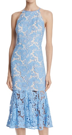 5) Keepsake Lace Dress, $380: In addition to its beautiful sky blue colour, this figure-flattering lace dress features a ruffled and slightly sheer mermaid hem. Meanwhile, the halter neckline and delicate overlay usher femininity into the design.