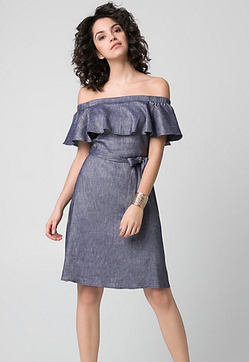 2) Le Château Chambray Off-the-Shoulder Dress, $100: Along with the bold patterns and prints of the season, timeless chambray and denim dresses are just as popular. This off-shoulder piece is accented with a flared cut and matching sash belt, for a fashionable finish.