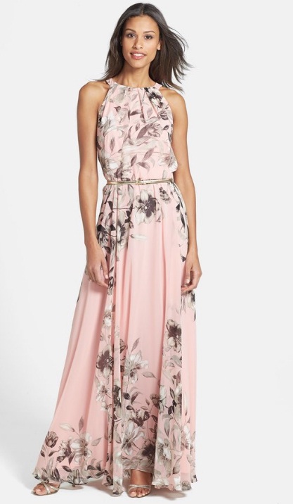 5) Eliza J Belted Chiffon Maxi Dress, $225: For an evening sartorial statement, we are liking this dramatic yet dignified creation by Eliza J. The pale pink colour contrasts against the oversized black and white blossoms, which help to create a garden inspired aesthetic. Meanwhile, the halter neckline, waist-cinching thin gold belt and flowing hem all enhance the design.