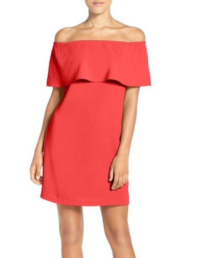 3) Charles Henry Off the Shoulder Dress, $125: Spring is the perfect time to embrace sweet shades of coral, and this fluttery dress is certainly no exception. With its off-the-shoulder neckline, oversized ruffles and above-the-knee hemline, this piece can be styled for either a casual Saturday or a night on the town.