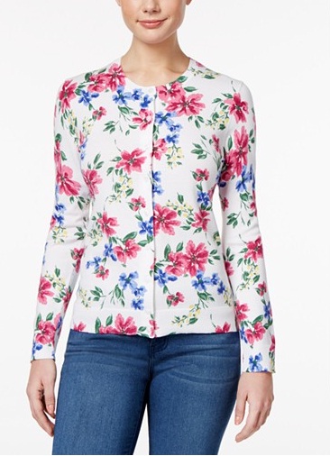 1) Karen Scott Printed Cardigan, $36: With blossom prints reigning supreme for Spring 2017, a flowery cardigan just might be the lightweight topper that Mom needs in her closet. This fitted white cardi features a splash of blue, green and pink blooms which just might brighten up her wardrobe.