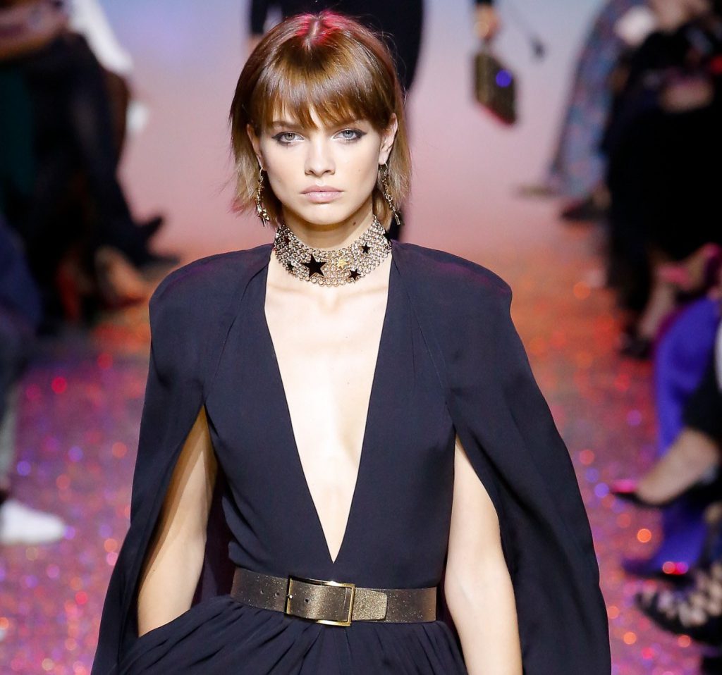 For an evening-ready take on the trend, look to the Elie Saab runway. A metallic star-studded choker makes a splash when paired with a navy blue jumpsuit. If you want to truly showcase a rock and roll metal neckpiece, turn to V-necks and dark, solid hues for an effortless juxtaposition.