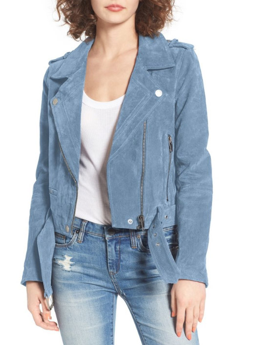 5) BLANKNYC Morning Suede Moto Jacket, $268: Much like the bright skies of springtime, the colour of this fitted suede jacket certainly fits the season. The biker chic design, metallic silver detail and accessorizing belt just may let you channel your inner rebel.