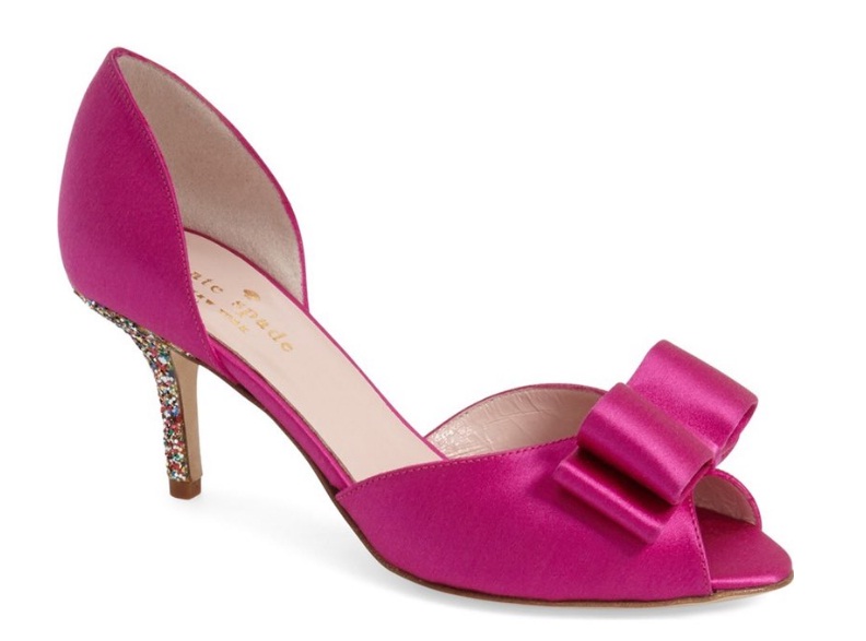 4) Kate Spade New York ‘Sela’ Glitter Heel D’Orsay Pump, $413: For a more youthful and fun take on the classic kitten heel, this pair by Kate Spade New York fits the bill. The brilliant fuchsia colour, sparkly low heels and pretty girly bows all lead to a cheery statement shoe.