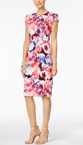 3) Betsey Johnson Floral-Print Scuba Midi Sheath Dress, $195: If you’re jumping straight from the classroom to the workforce, a sheath dress will come in useful for any number of upcoming business events. This scuba sheath is complete with a splashy floral print in a variety of pink and blue tones.