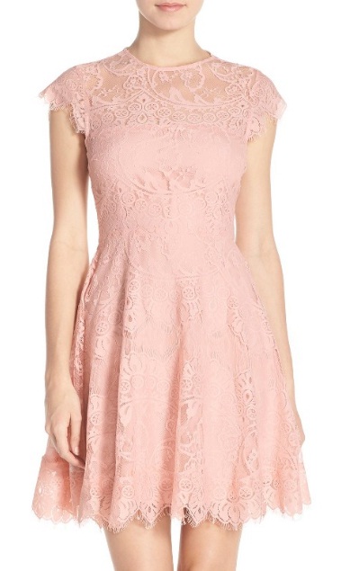 2) BB Dakota ‘Rhianna’ Illusion Yoke Lace Fit & Flare Dress, $138: With its pale pink hue and lacy detail, this flared frock is a winning fit for your Spring 2017 wardrobe. Meanwhile, the tiny cap sleeves and sheer yoke transform this trendy dress into a feminine and ethereal creation.