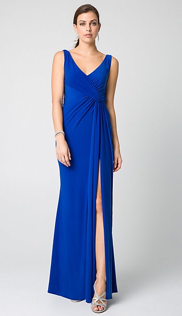 2) Le Château Knit V-Neck Gown, $190: The deep V-neckline on this royal blue gown makes it a glamorous look for the after hours. Meanwhile, a thigh-high slit and subtle ruching around the midsection completes the design of this sleeveless gown.