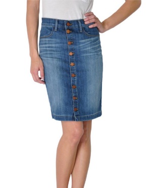 5) Fidelity Denim Skirt, $198: Although short denim skirts are certainly a popular choice, mid-length or knee-length skirts are just as versatile. The whiskered accents, faded wash and gold buttons on this skirt complete the look, and offer a funky, retro feel.