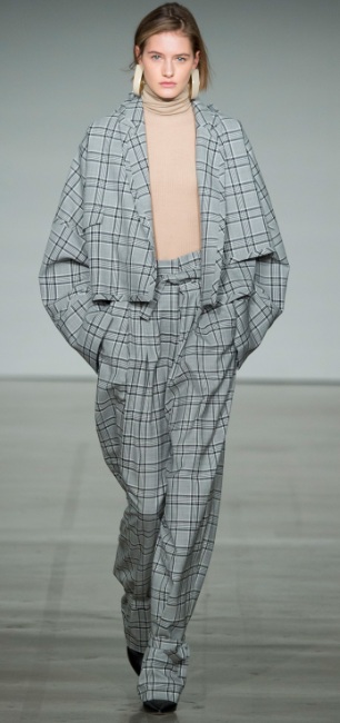 One look at the Zimmerman runway reveals oversized checks in subtle shades of grey, black and white. We are coveting this bulky, open collar blazer, which is styled with a pair of baggy trousers and a nude turtleneck top. Meanwhile, the addition of funky hoop earrings helps to fully complete the business chic look.