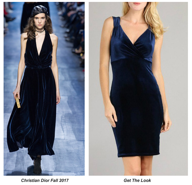 Along with the lace, satin and silk that is on the agenda for Fall 2017, velvet is also set to steal our hearts and earn a place in our wardrobes. At Dior, a rich navy blue velvet dress featured a deep V-neckline and a defined waistline. To get the look, try slipping into this Embrace Navy Velvet Dress, $60. The dark blue hue and fitted bodice are suitable for the evening hours, while the form-flattering style has definite sex appeal.