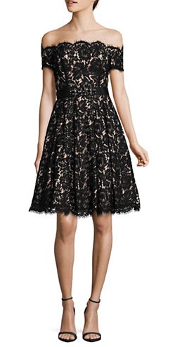 4) ELIZA J Off-Shoulder Lace Cocktail Dress with Belt, $329: Although dramatic floor-length gowns can look beautiful for a TIFF gala, a mid-length frock is just as pretty. With its asymmetrical hemline and black lace, this off-the-shoulder dress also fits into Fall 2017’s runway trends.