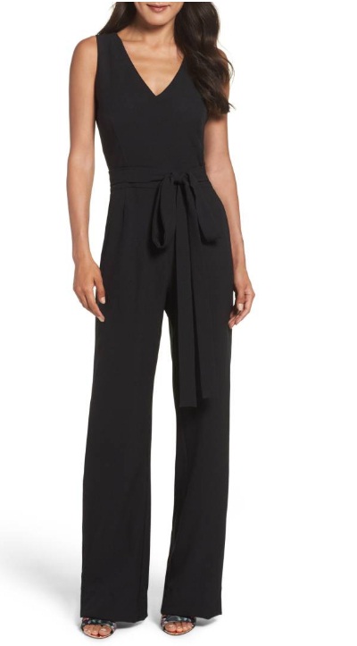 Vince Camuto Jumpsuit, $113: With its sleek lines and flared trousers, we are loving this crepe jumpsuit by Vince Camuto. The waist-cinching tie belt, fitted bodice and slight V-neckline complete the design.