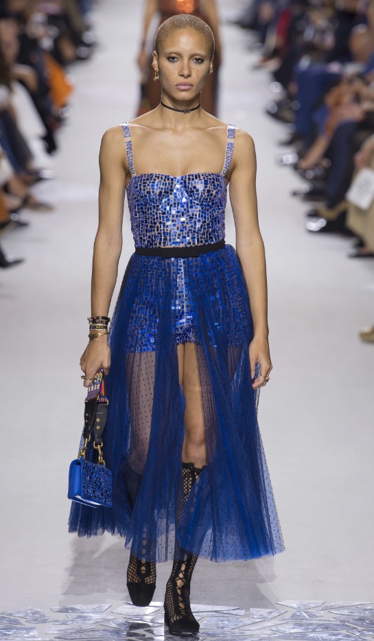 Designer Maria Grazia Chiuri merged practicality with elegance, which resulted in inspiration drawn from the 1970s. From bellbottom jeans paired with striped, feminist slogan tees to fringed knit skirts, the groovy Seventies were certainly in the air. Meanwhile, Dior’s latest colour palette involved shades of rich blue, creamy white and hints of neon yellow. Polka dots, black and white checkered prints and skirts with front slits all played a role.