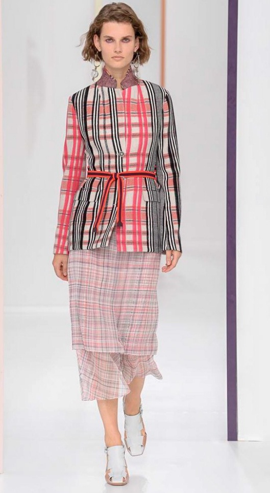 Creative director Nadège Vanhee-Cybulski played with plaid in a major way, with checkered and tartan prints making an entrance. Rich verdant shades of green shared the stage with yellow, candy pink and grey. From oversized boyfriend blazers to pastel yellow pants, colour and patterns stole the spotlight at Hermès. Pops of burgundy also brought depth to textured trousers, a wrap dress and a flared midi skirt.
