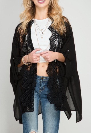She + Sky Roll-Up Crochet Cardigan, $68: For an easygoing layer over your wine-coloured frock, try slipping into a light cardigan. This crochet lace cardi is designed with billowing, full sleeves and an open front style. The combination of black and red is also a gorgeous look for the early autumn days, and can truly light up your Thanksgiving dinner.
