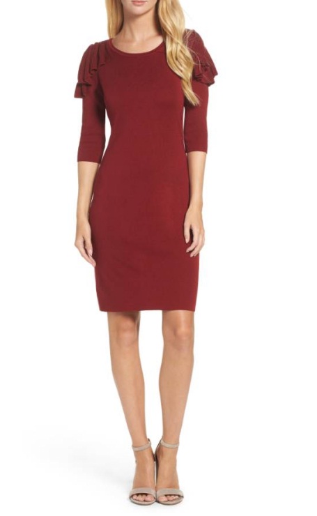 Gabby Skye Ruffle Cold Shoulder Sweater Dress, $128: We are liking the girlish ruffle detail and three-quarter sleeves on this sweater dress. Meanwhile, the deep wine red colour is a suitable choice that suits the colour scheme of fall.