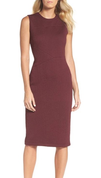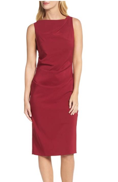 Maria Bianco Nero Courtney Drape Front Sheath Dress, $372: We are liking this wine-coloured sheath dress, which features subtle ruching and a mid-length hemline. The sleeveless style and high neckline help to create a feminine effect.