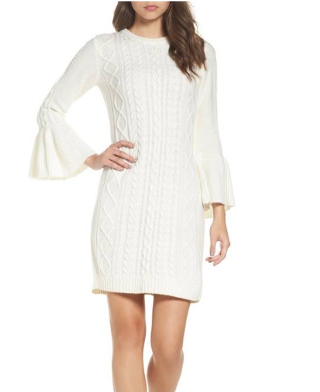 Eliza J Mixed Cable Sweater Dress, $146: With classic ivory having the ability to brighten your late autumn style, this white sweater dress just may be your style solution. The ruffled sleeves and cable knit design add a preppy, feminine finish to the frock.