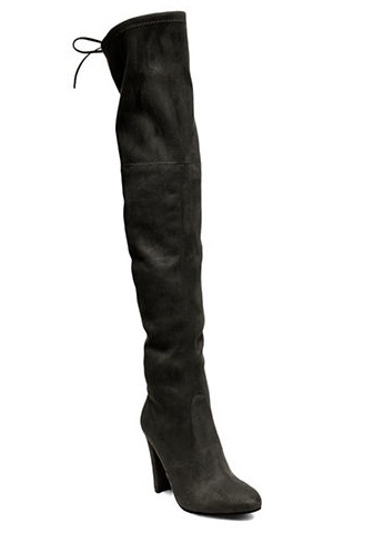 Steve Madden Tall Suede Boots, $130: For a finishing touch, a pair of over-the-knee suede boots can bring a sexy and sophisticated feel to your glittering outfit. These black thigh-highs feature a pointed toe, chunky block heel and lace-up ties on the back.