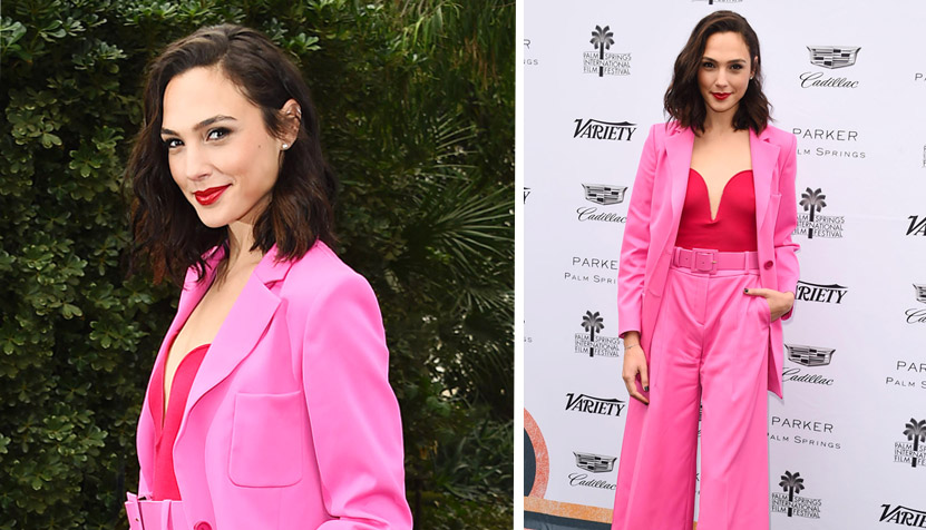 Yesterday, Gal Gadot made an appearance at the Variety’s Creative Impact Awards and 10 Directors to Watch Brunch, which took place during the Palm Spring Film Festival. The gorgeous Israeli-born actress stunned in a girlish pink Oscar de la Renta ensemble. Although the Valentine’s Day-esque tones may seem garish, Gadot managed to rock the look and pull off the bright shades.
