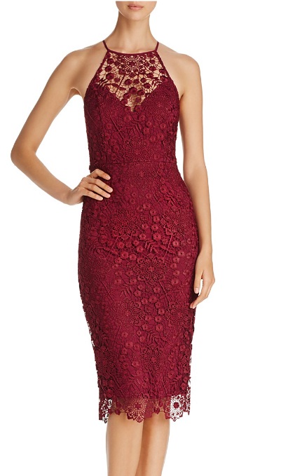 Yumi Kim She’s Mine Lace Halter Dress, $256: The crochet lace on this deep red halter dress offers a cool, chic effect. For a finishing touch, a sweetheart neckline and fitted silhouette complete the look.