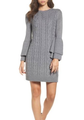 Eliza J Mixed Cable Sweater Dress, $154: The sub-zero temperatures aren’t an excuse to leave your style game at the door when you head into the office or out for cocktails. We like this simple yet sophisticated grey sweater dress, which is detailed with a cable knit pattern and pretty tiered sleeves.