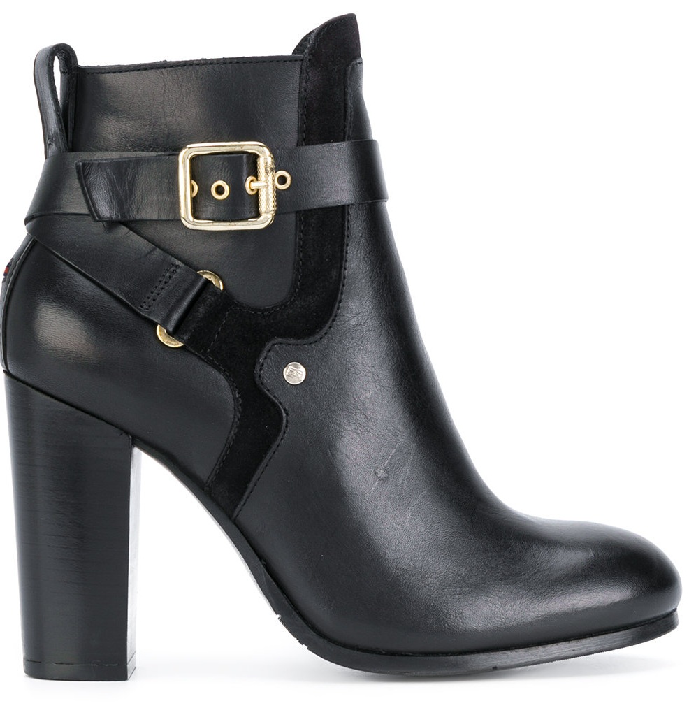 Tommy Hilfiger Heeled Buckle Ankle Boots, $399: From skinny trousers to an oversized tunic worn with tights, the versatility of leather booties is a pretty impressive quality. With their high block heels and contrasting gold buckles, these black boots offer a streetwise, cool effect.