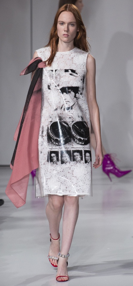 Ladylike patterns were key at Calvin Klein, where a toned-down take on the trend made a special appearance. We are liking this knee-length white lace frock, which is adorned with a vintage style black and white portrait motif. With a mix of femininity and simplicity, this design proves that wearable art is entirely a possibility.