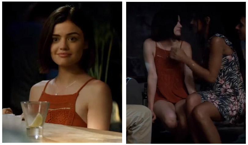 In the new horror thriller Truth or Dare, actress Lucy Hale makes a starring appearance as Olivia, a young woman who joins her friends for a seemingly innocuous game of Truth or Dare. However, this adventure turns out to be far more than just fun and games, and leads to a terrifying result. Despite the imminent threat hanging over her character’s head, Hale’s character boasts chic yet understated girl next door style. We are particularly coveting this little red dress, which features thin spaghetti straps and a delicate crochet bodice. If you are aiming to channel your inner Lucy Hale this spring, here’s how to get her Truth or Dare style for yourself.