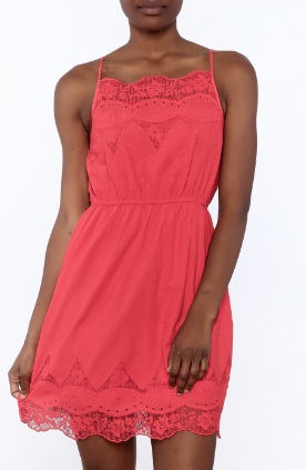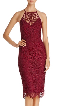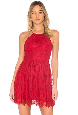 Bobi Fishnet Lace Dress, $117: We are liking the punchy ruby red hue of this strappy lace dress, which features a low back and a high neckline. Meanwhile, the flared and pleated skirt adds a feminine finish.