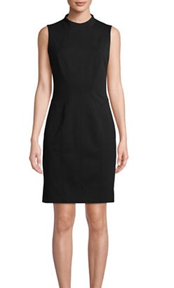 Calvin Klein Sheath, $175: We are liking the multiple buttons which adorn this sleeveless, above-the-knee frock. The high neckline, zippered back and defined waistline help to wrap up the ladylike style.