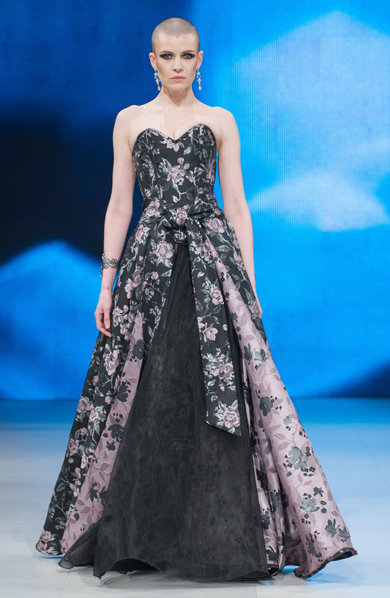 Steven: My new collection is emulating the passion you feel when you fall in love. I wanted to use dramatic silhouettes and bold colours and fabrics to create romantic and powerful gowns that show the passionate feeling of falling in love.