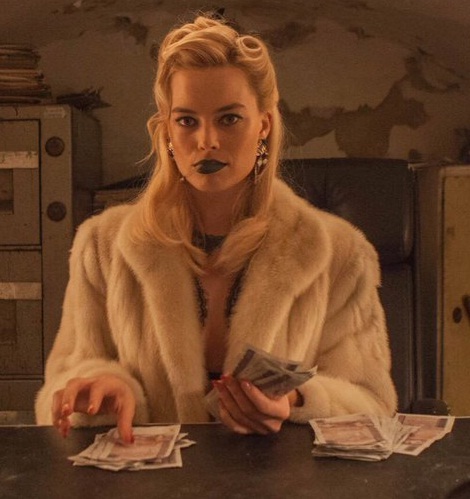 Robbie’s sleek and chic Annie stuns here in her furry white coat, which conceals her décolletage and lacy bodice. The cream colour of the topper and dangling embellished earrings bring a hint of luxury to her overall look, and flatter her perfectly coiffed golden locks.