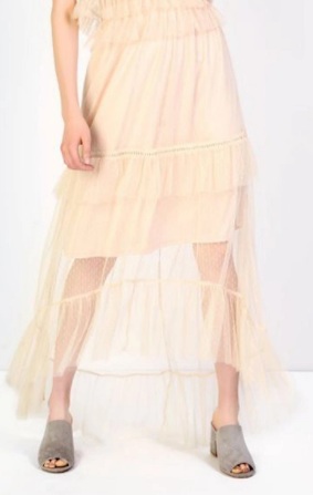 Glamorous Mesh Maxi Skirt, $54: We are liking this cream-coloured bohemian chic skirt, which features a sheer hem. The tiers and mesh accents help to bring the overall aesthetic together, while the neutral colour is a perfect lightweight look for the summery days ahead.